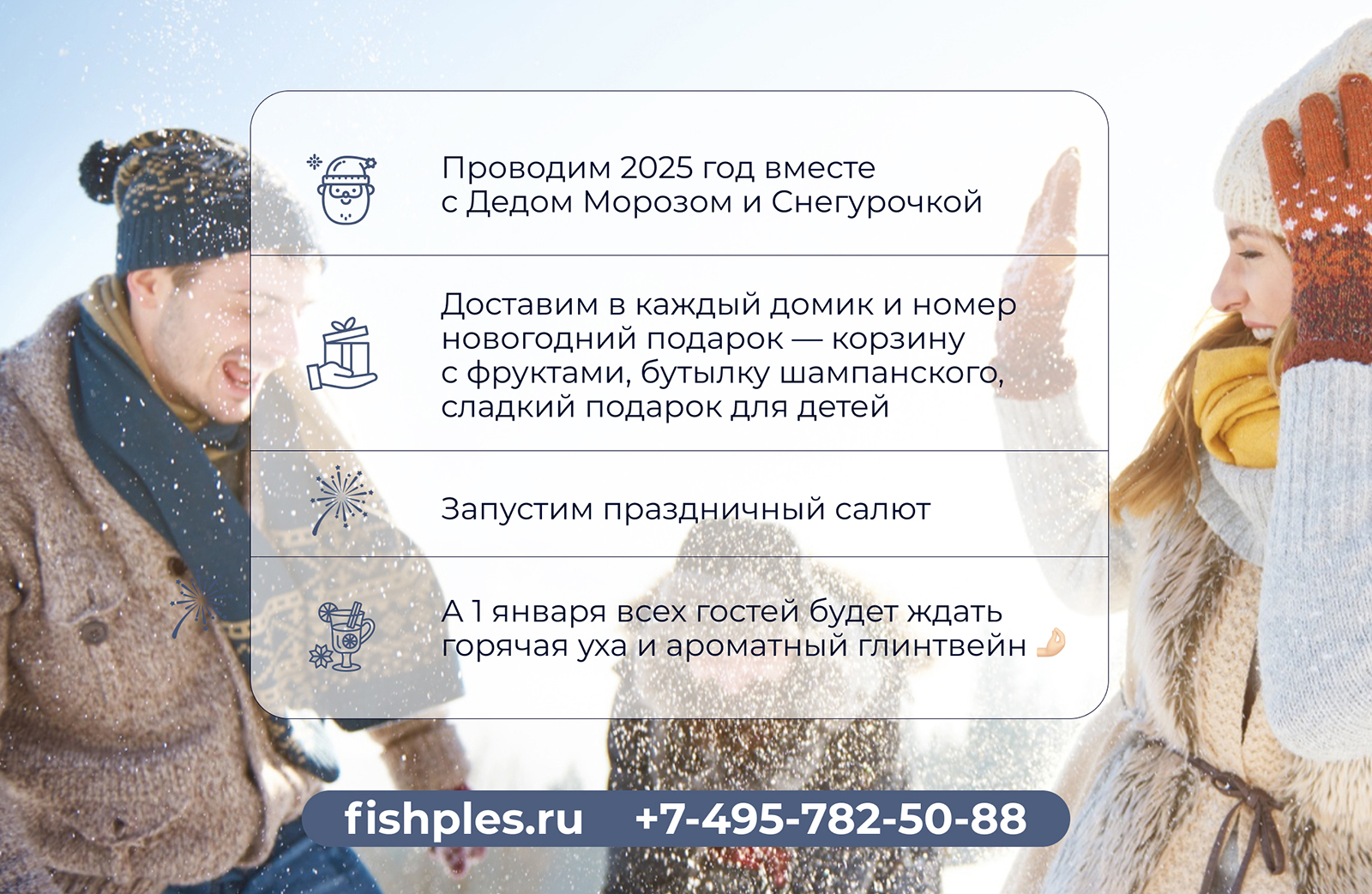 Нет ничего лучше, чем встретить Новый год и Рождество в кругу самых близких, наслаждаясь природой и свежим воздухом!